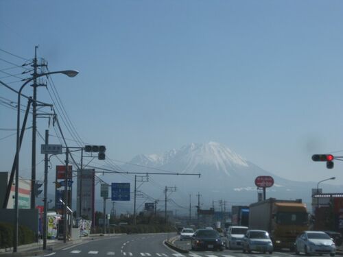 今日は2月28日、2月も終わりです。朝の気温は低かったのですが、昼間は日差しがあり、暖かかった1日でした。国道431号線、日吉津のジャスコ交差点から見た大山です。赤信号で止まった時に撮りました。空には雲ひとつありません。 ここよりも、日野橋…